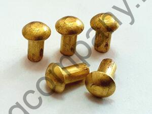 Латунные заклепки устойчивы к эксплуатации в агрессивной среде, так же они часто используются при сборке изделий, где требуется привлекательный внешний вид.